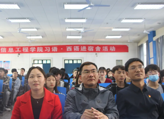 为帮助学生了解习近平语录蕴含的思想文化及其深刻的内涵意味,4月22日下午,新葡的京集团3512vip在4106教室举办“西语·习语进宿舍”活动。党委副书记杨康鑫、19级辅导员薛天桥、20级辅导员王松娜以及近两百名学生参与了此次活动。
