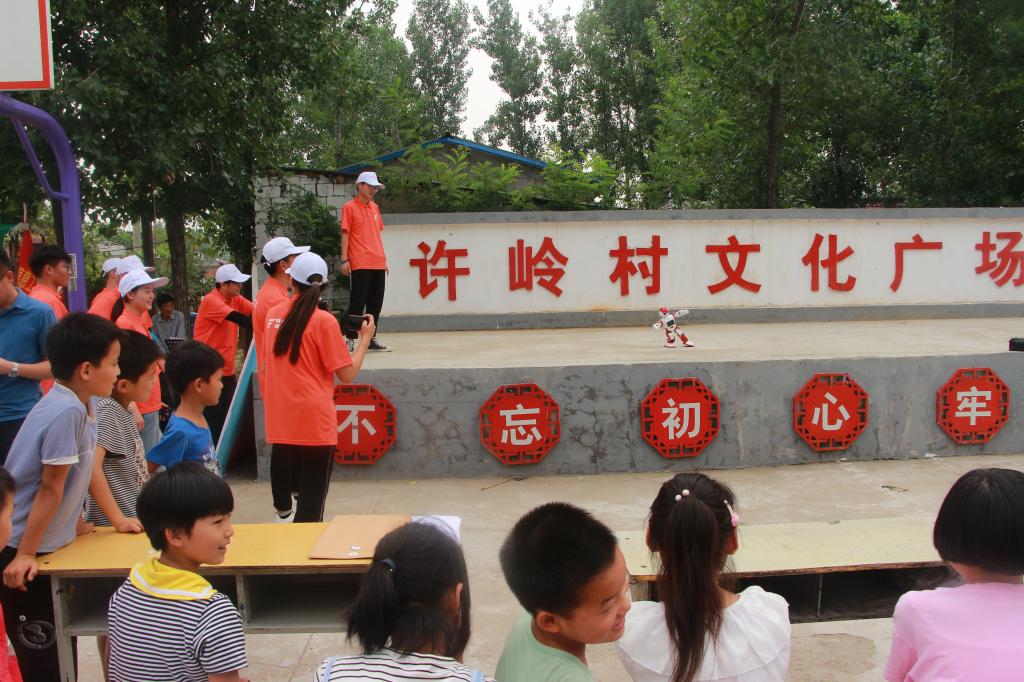 志愿者们为“三下乡”活动启动仪式精心准备了精彩的节目。仪式开始后,首先由许岭村党支部书记田金环代表全体村民对服务团的到来表示了热烈的欢迎,然后服务团带队老师常钰河对本次“三下乡”活动做总体介绍,随后,在村民们期待的目光中,志愿者们依次走上台将精心准备的节目全盘托出。其中,平顶山学院新葡的京集团3512vip特有的机器人舞蹈展演受到了村民们的一致好评,小朋友们满脸惊奇,都围着操控机器人的志愿者想要了解机器人的构造和原理。“哥哥,你是怎么让它跳舞的啊?”“哥哥,可以再给我们展示一下这个机器人吗?”一声声的哥哥,叫的那么可爱那么亲切,叫出了小朋友们对机器人的热爱,他们专注的目光透露出对科学知识的热爱与向往。