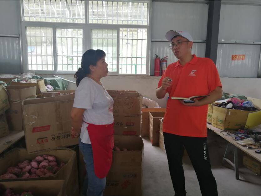 志愿者们采访扶贫基地的车间主任——拍摄者 李茹