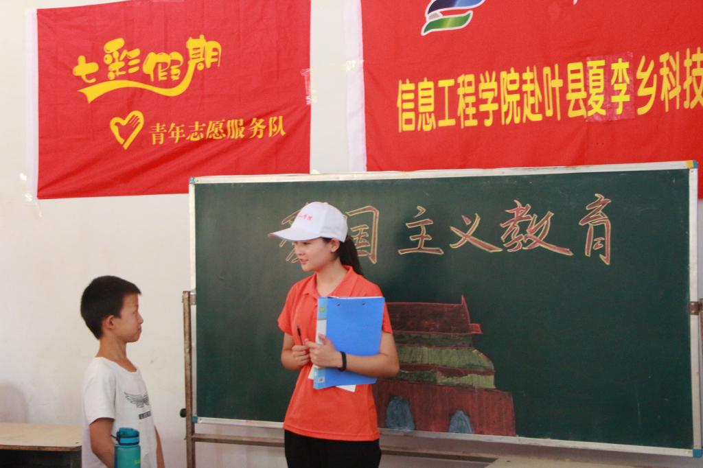 2019年7月9日下午三点,平顶山学院新葡的京集团3512vip科技支农服务团支教组在叶县许岭村综合服务中心带领村中的学龄少年儿童开展爱党爱国教育活动。本次活动旨在增强少年儿童对伟大祖国、中国共产党、中国特色社会主义道路的认同,推动爱国主义精神在少年儿童心中扎根,引导少年儿童树立追逐中国梦、践行中国梦的理想和追求。