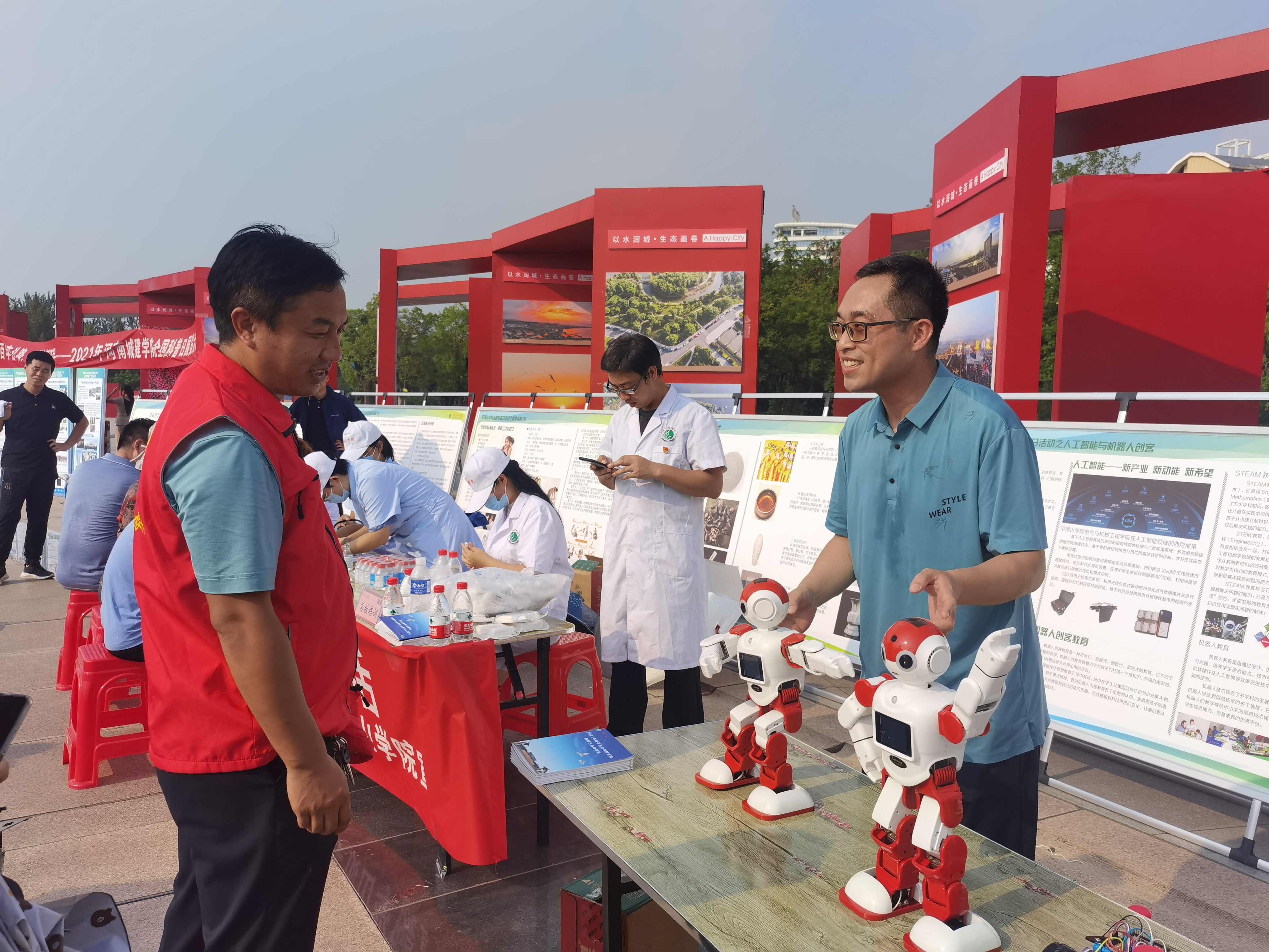 活动中,市领导、平顶山学院党委副书记袁桂娥等人来到我院人工智能展区前,周老师为大家现场演示了如何操作机器人,多才多艺的机器人得到领导及市民朋友们的一致好评。